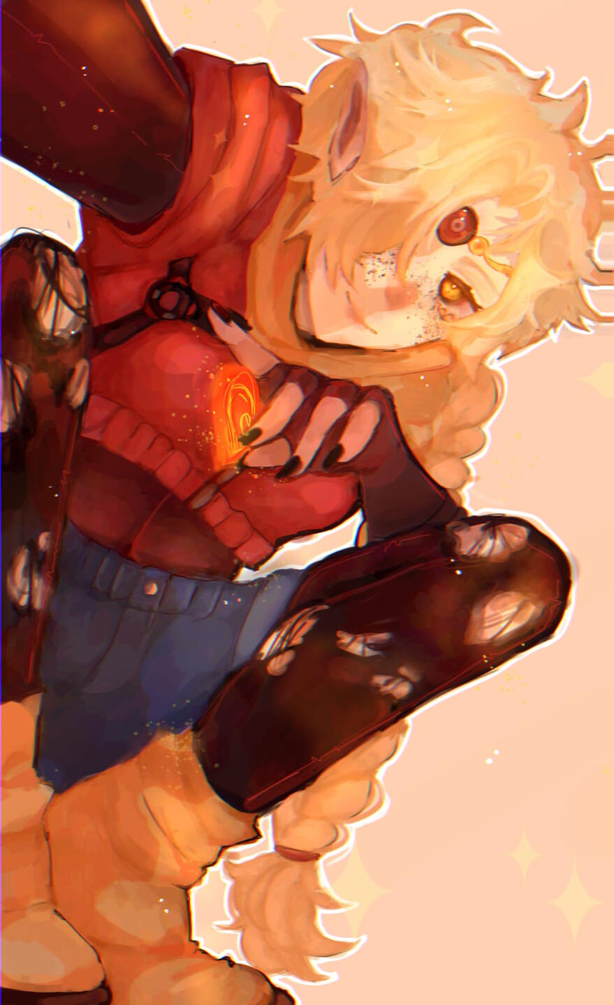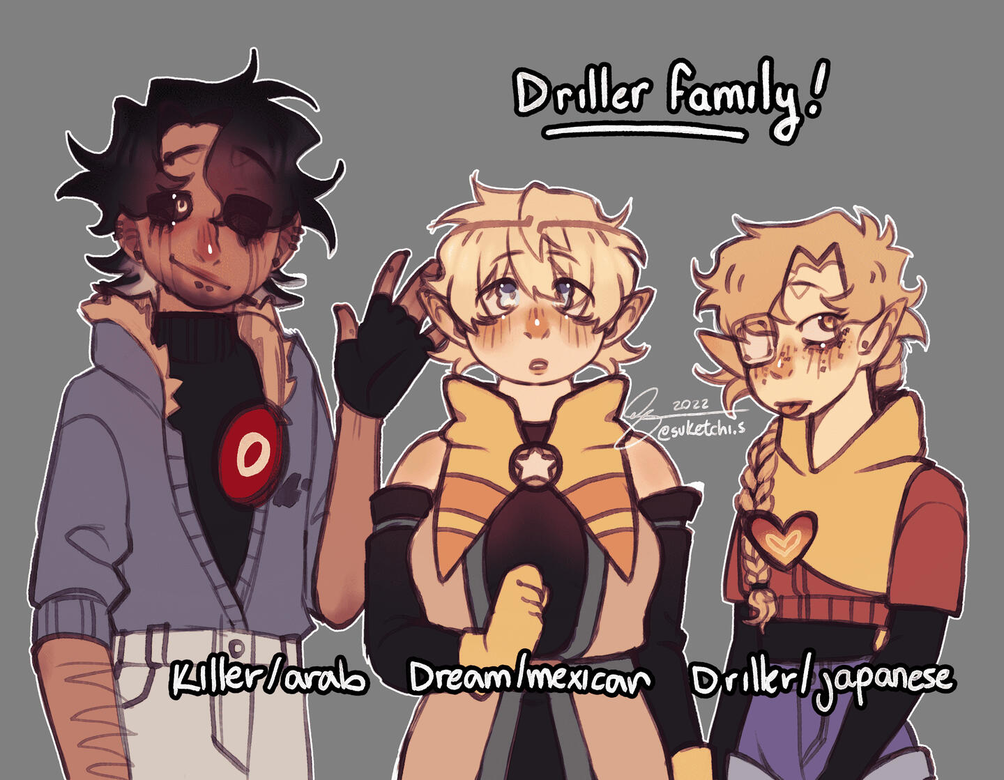 Driller is the child of Killer & Dream Sans, created by magic debris left after a battle they had in Japan! They managed to find Killer when they were already 13 years old, but maybe someone already knew of their existence..?